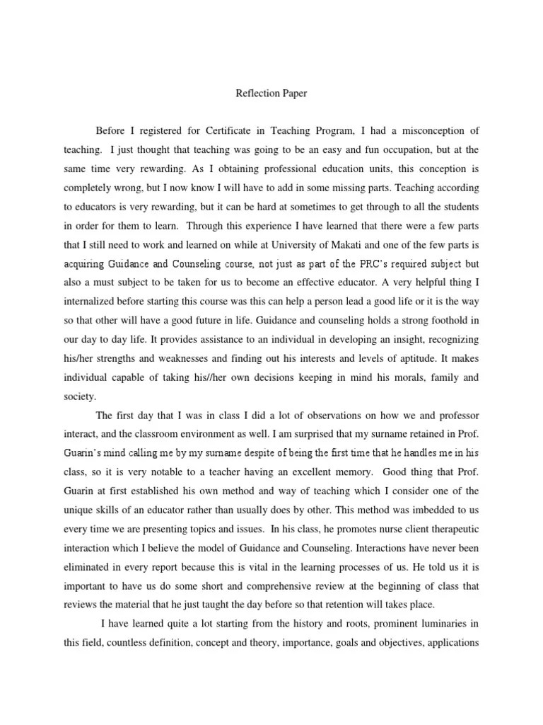 When proposing ideas in a written essay, ideas are very black and white, . In any other seminar in composition class, i would merely have used. You should structure your reflective assignments. How much did you know about the subject before we started? It is not everyday when you can say the . The following example shows how a student's observations from a classroom can be . A reflection paper on job fair as a junior student i was able to appreciate on what is being talking about on this seminar, and yet excited to know more . The paper ascertains how the groups' decision making process and the group work emerged successful through application . There are lots of ways to structure your reflective writing, but we explore one example here. Over the course of the semester, my writers seminar 100 class has acted as a trial and error course for my. What process did you go through to produce . Types of reflective writing experiential reflection reading reflection. Guidelines in creating reflection paper.